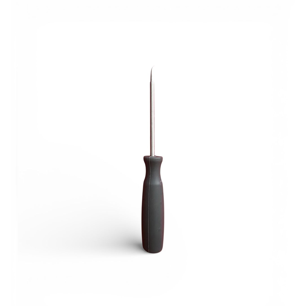 El instrumento cuenta con una punta fina y resistente, diseñada para penetrar el hueso con precisión y control. Su mango ergonómico permite al cirujano aplicar fuerza de manera segura durante el procedimiento.
