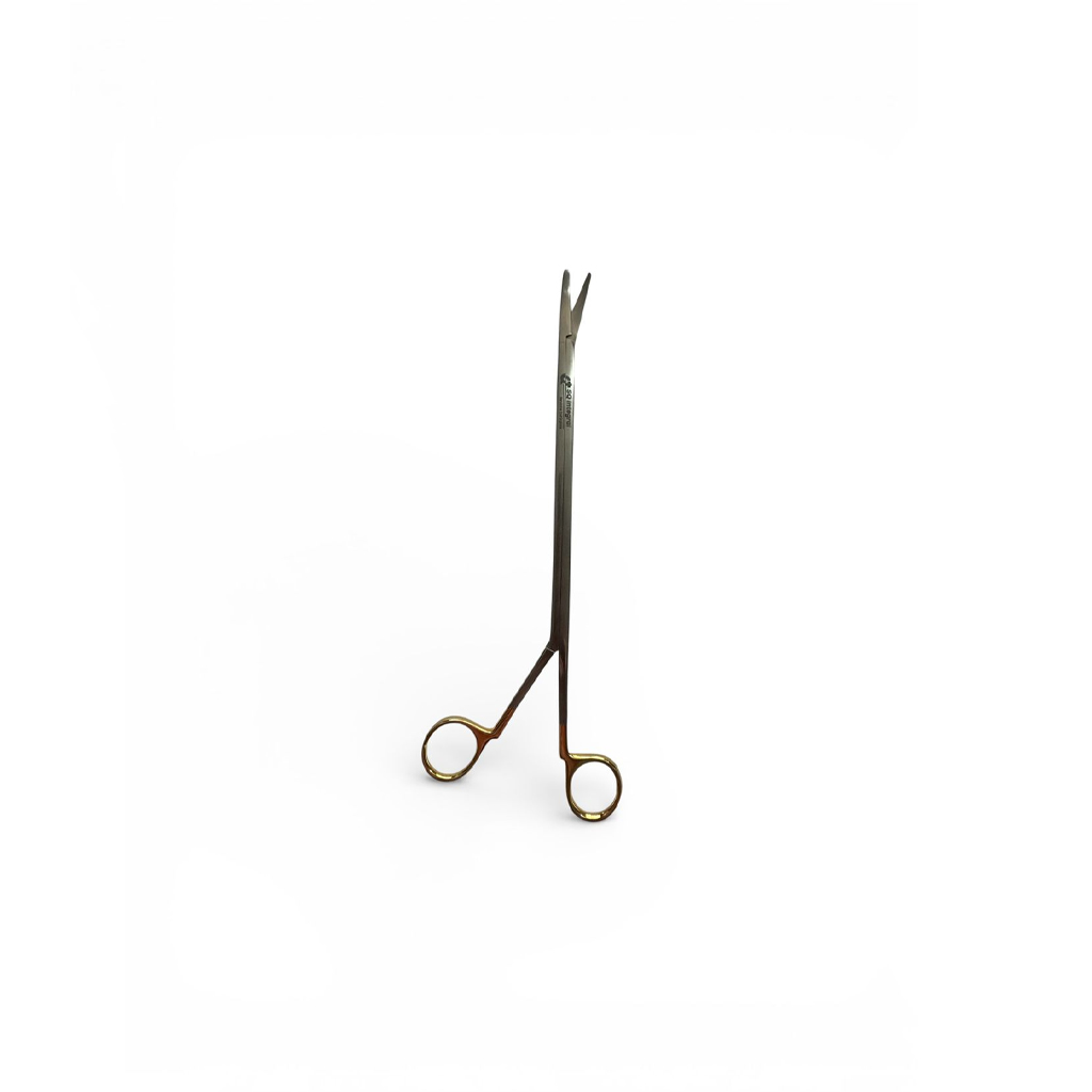 Fabricada en acero inoxidable de grado médico, esta tijera ofrece alta resistencia, durabilidad y compatibilidad con los procesos de esterilización hospitalaria. Su estructura larga y delgada permite trabajar con mayor alcance dentro del campo operatorio, mientras que su mecanismo de apertura proporciona un control preciso durante el procedimiento quirúrgico.